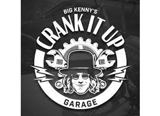 Unisex black tee with Big Kenny's Garage neon sign design on the front.